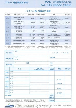 4.本講座および短期集中講座に複数人数お申し込みの場合、二人目以降は20%の割引とさせて頂きます。